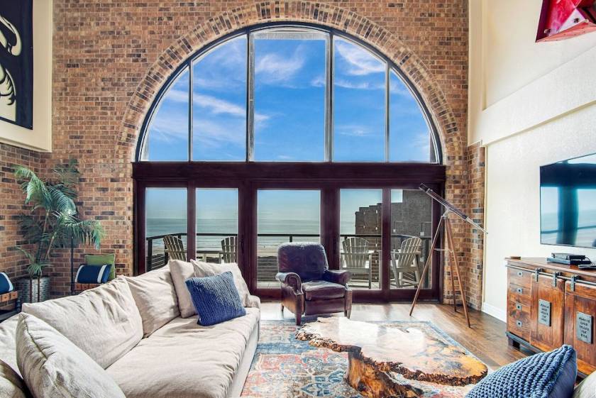 For travelers seeking the ultimate Port Aransas experience, Aransas Princess #802 delivers unmatched luxury. This stunning two-story penthouse features a dramatic floor-to-ceiling arched window with a straight-on view of the Gulf of Mexico. It's an unforgettable backdrop for your stay.